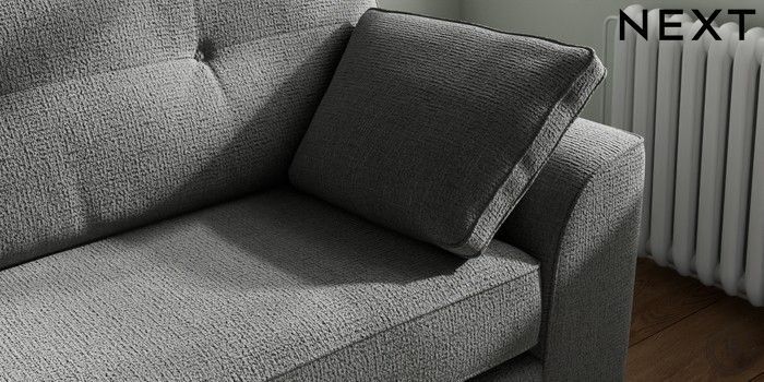 7.2.10 Stamford Buttoned Back 4 Seater Sofa Chunky Texture Dark Grey Large Square Angle - Chrome Metal | Made Click here to use our website with more accessibility support, for example screen readers