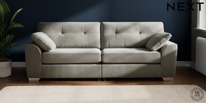 7.2.10 Stamford Buttoned Back 4 Seater Sofa Chunky Texture Dove Large Square Angle - Chrome Metal | Made Click here to use our website with more accessibility support, for example screen readers