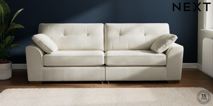 7.2.10 Stamford Buttoned Back 4 Seater Sofa Chunky Texture Oyster Large Square Angle - Mid | Made Click here to use our website with more accessibility support, for example screen readers