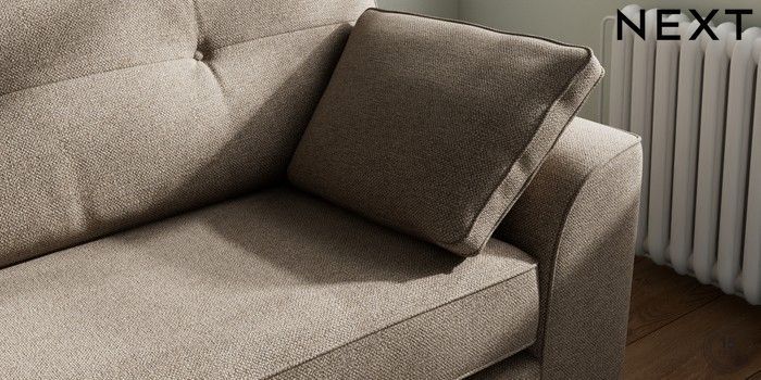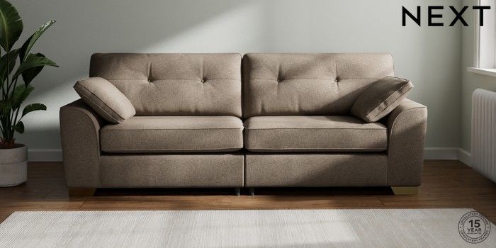 7.2.10 Stamford Buttoned Back 4 Seater Sofa Chunky Weave Dark Natural Large Square Angle - Brushed Brass | Made Click here to use our website with more accessibility support, for example screen readers