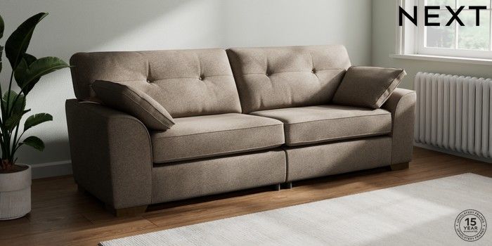 7.2.10 Stamford Buttoned Back 4 Seater Sofa Chunky Weave Dark Natural Large Square Angle - Mid | Made Click here to use our website with more accessibility support, for example screen readers