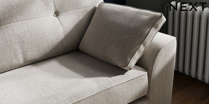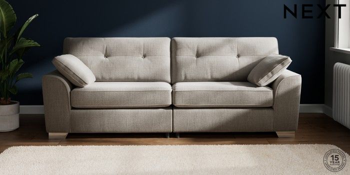 7.2.10 Stamford Buttoned Back 4 Seater Sofa Chunky Weave Dove Grey Large Square Angle - Chrome Metal | Made Click here to use our website with more accessibility support, for example screen readers
