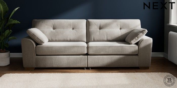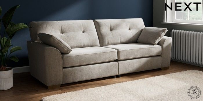 7.2.10 Stamford Buttoned Back 4 Seater Sofa Chunky Weave Dove Grey Large Square Angle - Mid | Made Click here to use our website with more accessibility support, for example screen readers