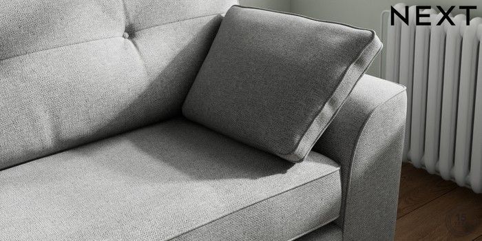 7.2.10 Stamford Buttoned Back 4 Seater Sofa Chunky Weave Mid Grey Large Square Angle - Brushed Brass | Made Click here to use our website with more accessibility support, for example screen readers