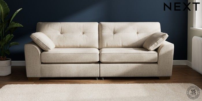 7.2.10 Stamford Buttoned Back 4 Seater Sofa Chunky Weave Mid Natural Large Square Angle - Mid | Made Click here to use our website with more accessibility support, for example screen readers