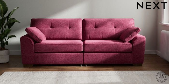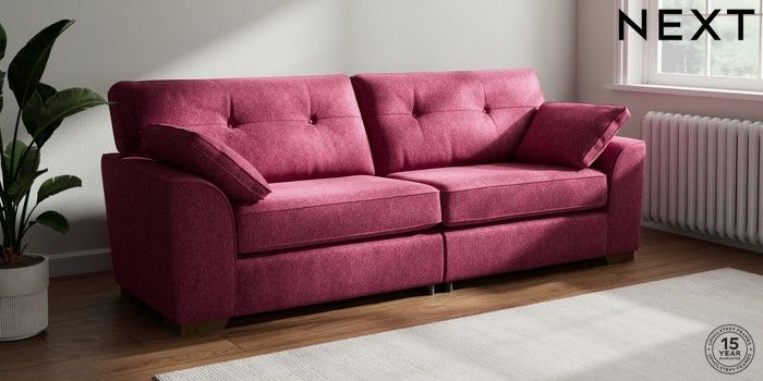 7.2.10 Stamford Buttoned Back 4 Seater Sofa Cotswold Chenille Dark Raspberry Pink Large Square Angle - Mid | Made Click here to use our website with more accessibility support, for example screen readers