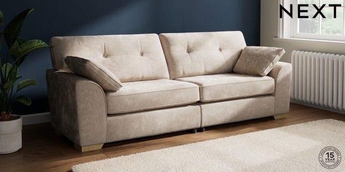 7.2.10 Stamford Buttoned Back 4 Seater Sofa Distressed Velour Mid Natural Large Square Angle - Light | Made Click here to use our website with more accessibility support, for example screen readers