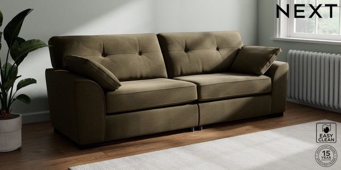 7.2.10 Stamford Buttoned Back 4 Seater Sofa Fine Chenille Easy Clean Dark Moss Green Large Square Angle - Dark | Made Click here to use our website with more accessibility support, for example screen readers