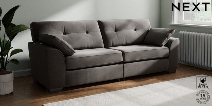 7.2.10 Stamford Buttoned Back 4 Seater Sofa Fine Chenille Easy Clean Dark Smoke Grey Large Square Angle - Gunmetal | Made Click here to use our website with more accessibility support, for example screen readers