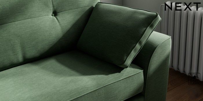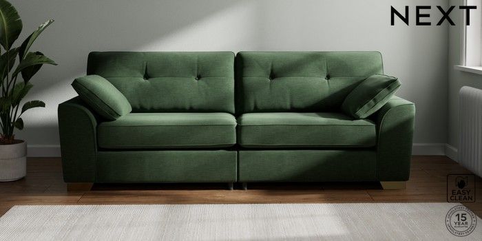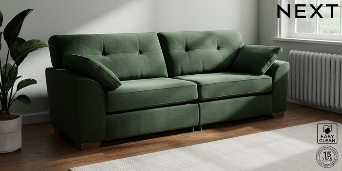 7.2.10 Stamford Buttoned Back 4 Seater Sofa Fine Chenille Easy Clean Mid Khaki Green Large Square Angle - Brushed Brass | Made Click here to use our website with more accessibility support, for example screen readers