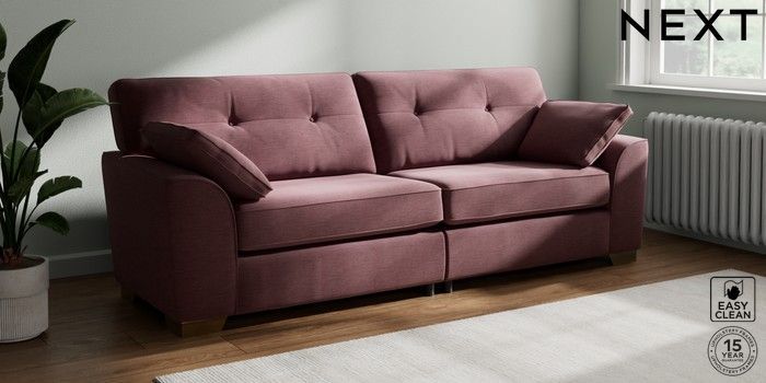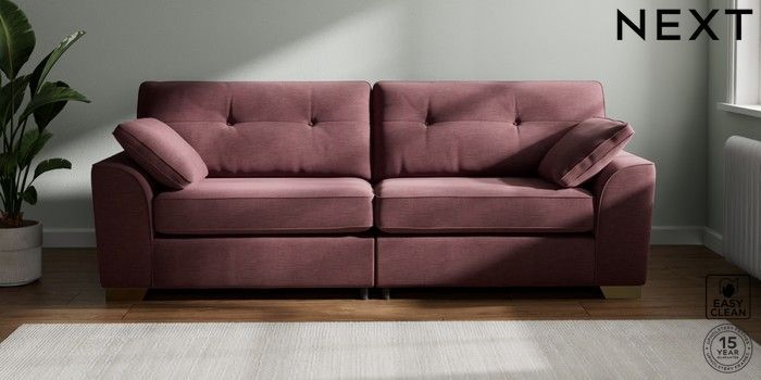 7.2.10 Stamford Buttoned Back 4 Seater Sofa Fine Chenille Easy Clean Mid Mulberry Purple Large Square Angle - Brushed Brass | Made Click here to use our website with more accessibility support, for example screen readers