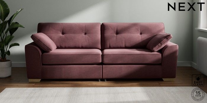 7.2.10 Stamford Buttoned Back 4 Seater Sofa Fine Chenille Easy Clean Mid Mulberry Purple Large Square Angle - Light | Made Click here to use our website with more accessibility support, for example screen readers