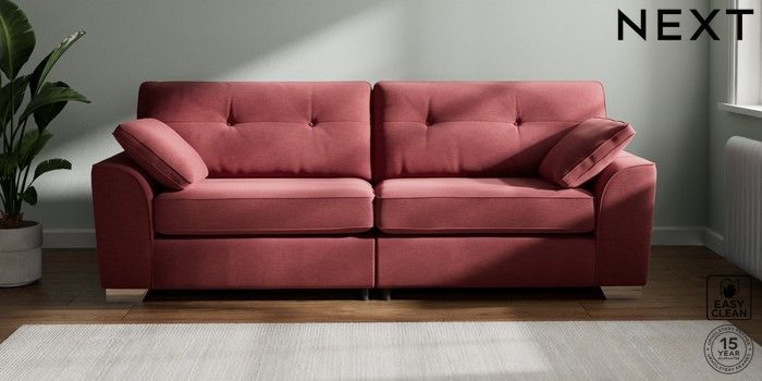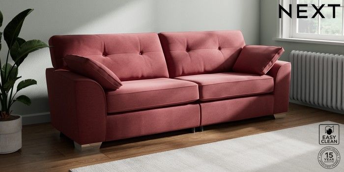 7.2.10 Stamford Buttoned Back 4 Seater Sofa Fine Chenille Easy Clean Mid Pink Large Square Angle - Chrome Metal | Made Click here to use our website with more accessibility support, for example screen readers