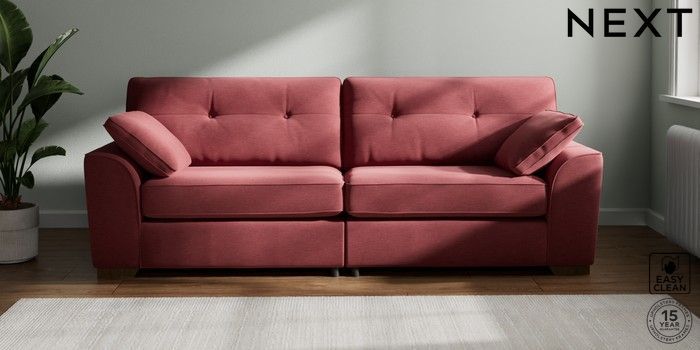 7.2.10 Stamford Buttoned Back 4 Seater Sofa Fine Chenille Easy Clean Mid Pink Large Square Angle - Mid | Made Click here to use our website with more accessibility support, for example screen readers