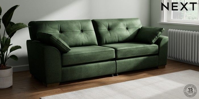 7.2.10 Stamford Buttoned Back 4 Seater Sofa Luxe Chenille Dark Green Large Square Angle - Mid | Made Click here to use our website with more accessibility support, for example screen readers