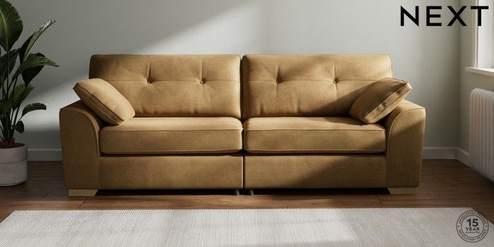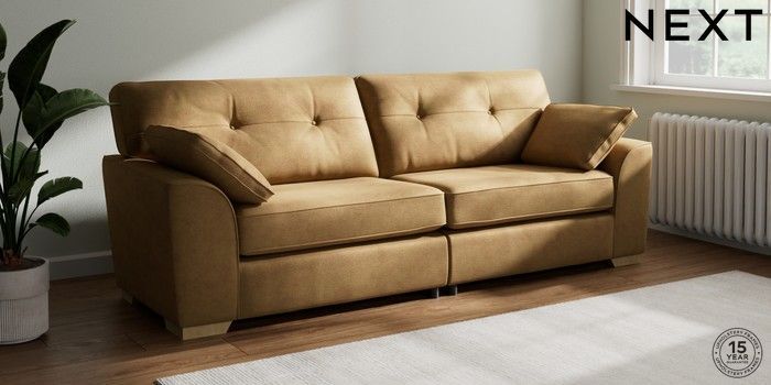 7.2.10 Stamford Buttoned Back 4 Seater Sofa Luxe Chenille Honey Yellow Large Square Angle - Light | Made Click here to use our website with more accessibility support, for example screen readers