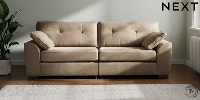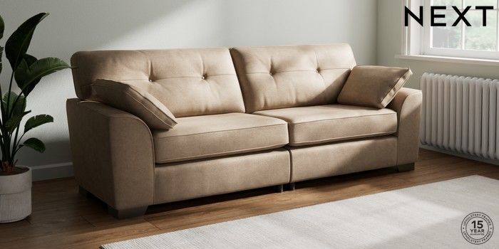 7.2.10 Stamford Buttoned Back 4 Seater Sofa Luxe Chenille Mid Camel Beige Large Square Angle - Gunmetal | Made Click here to use our website with more accessibility support, for example screen readers