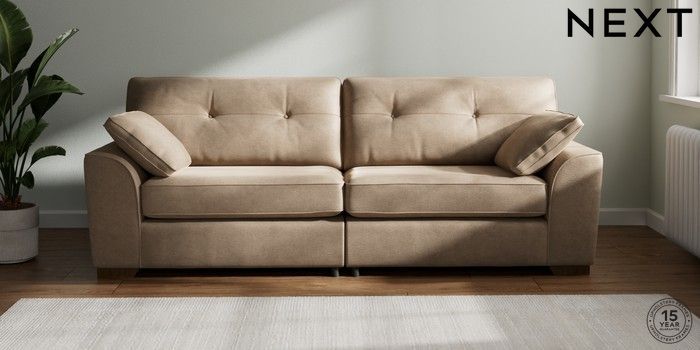 7.2.10 Stamford Buttoned Back 4 Seater Sofa Luxe Chenille Mid Camel Beige Large Square Angle - Mid | Made Click here to use our website with more accessibility support, for example screen readers