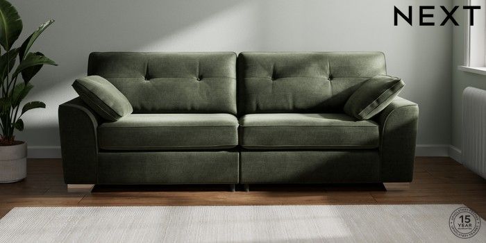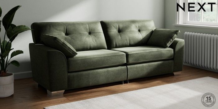 7.2.10 Stamford Buttoned Back 4 Seater Sofa Luxe Chenille Mid Green Large Square Angle - Chrome Metal | Made Click here to use our website with more accessibility support, for example screen readers