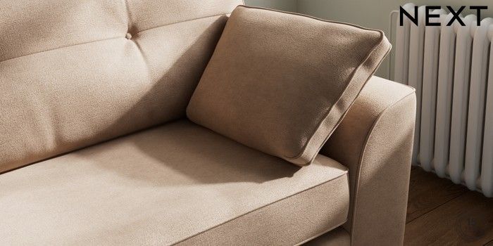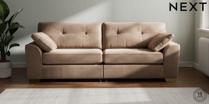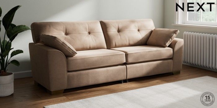 7.2.10 Stamford Buttoned Back 4 Seater Sofa Luxe Chenille Mid Natural Large Square Angle - Brushed Brass | Made Click here to use our website with more accessibility support, for example screen readers