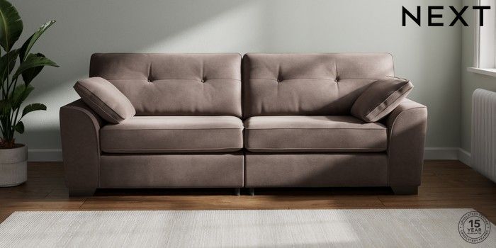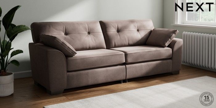 7.2.10 Stamford Buttoned Back 4 Seater Sofa Luxe Chenille Mink Brown Large Square Angle - Gunmetal | Made Click here to use our website with more accessibility support, for example screen readers
