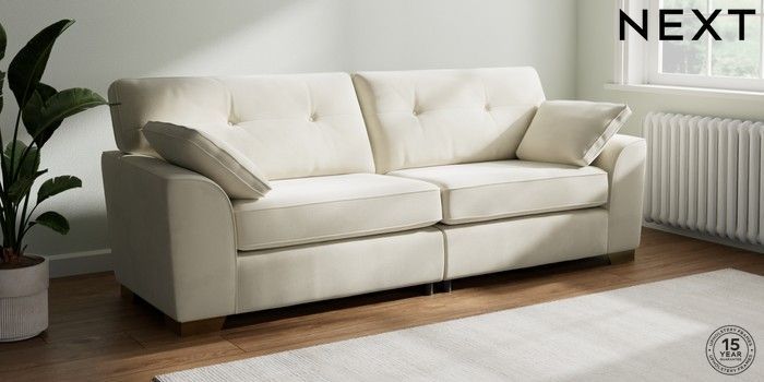 Bring timeless charm and ultimate family comfort to your home with the Stamford Buttoned sofa. Its large size and plush bolster cushions make it ideal for cosying up on. The "Firmer Sit" seat cushions provide exceptional support and durability, always returning to their tailored shape. These low-maintenance, reversible cushions are designed for lasting good looks. Personalise your Stamford Buttoned by picking from a vast selection of fabrics and various feet options. This range has a sofa bed. Sofa beds are a practical and comfortable addition to any home, big or small. Our sofa beds are pull-out beds containing a separate 6cm occasional foam mattress. This pull-out mechanism is concealed underneath the main cushions. We have sofa beds across multiple ranges, but they all are 120cm in width and 180cm in length, so we suggest a double duvet and a double flat sheet to dress your sofa bed.