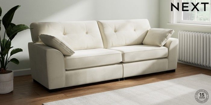 7.2.10 Stamford Buttoned Back 4 Seater Sofa Luxe Chenille Oyster Large Square Angle - Dark | Made Click here to use our website with more accessibility support, for example screen readers