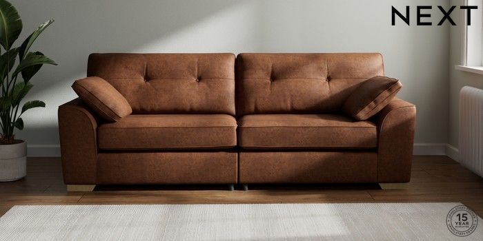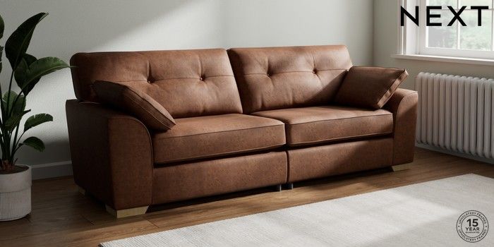 7.2.10 Stamford Buttoned Back 4 Seater Sofa Monza Faux Leather Easy Clean Chestnut Brown Large Square Angle - Light | Made Click here to use our website with more accessibility support, for example screen readers