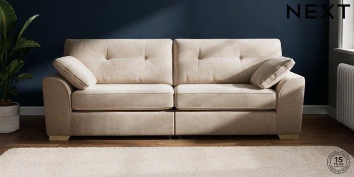 7.2.10 Stamford Buttoned Back 4 Seater Sofa Multi Weave Mid Natural Large Square Angle - Light | Made Click here to use our website with more accessibility support, for example screen readers