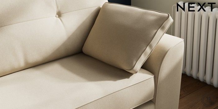 7.2.10 Stamford Buttoned Back 4 Seater Sofa Natural Mix Light Natural Large Square Angle - Chrome Metal | Made Click here to use our website with more accessibility support, for example screen readers