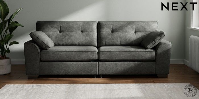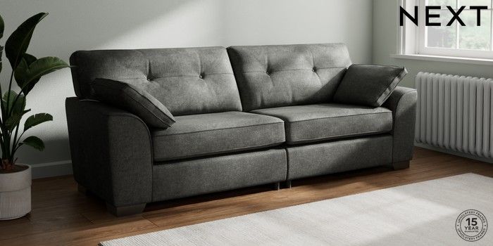 7.2.10 Stamford Buttoned Back 4 Seater Sofa Plush Chenille Dark Grey Large Square Angle - Gunmetal | Made Click here to use our website with more accessibility support, for example screen readers