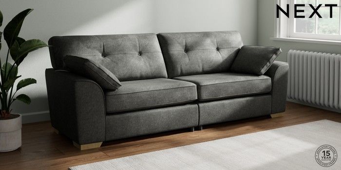 7.2.10 Stamford Buttoned Back 4 Seater Sofa Plush Chenille Dark Grey Large Square Angle - Light | Made Click here to use our website with more accessibility support, for example screen readers