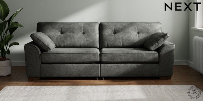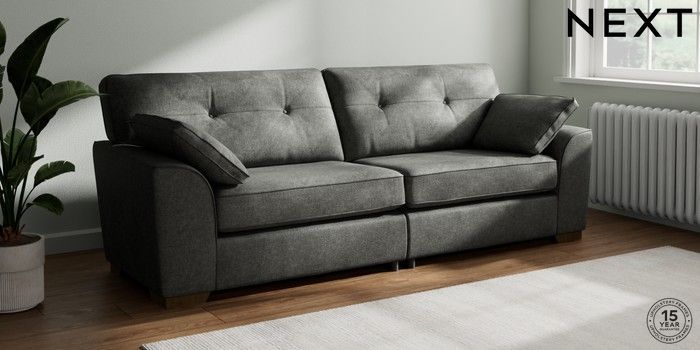 7.2.10 Stamford Buttoned Back 4 Seater Sofa Plush Chenille Dark Grey Large Square Angle - Mid | Made Click here to use our website with more accessibility support, for example screen readers