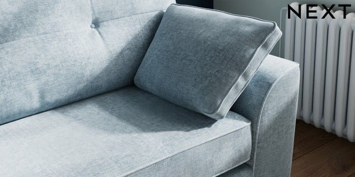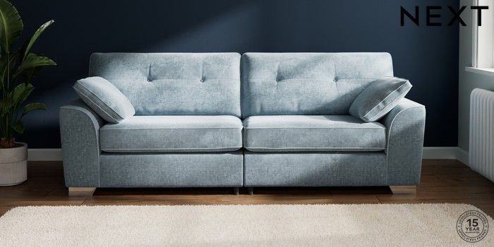 7.2.10 Stamford Buttoned Back 4 Seater Sofa Plush Chenille Light Blue Large Square Angle - Chrome Metal | Made Click here to use our website with more accessibility support, for example screen readers