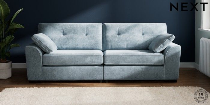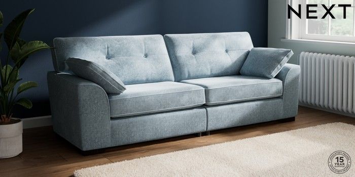 7.2.10 Stamford Buttoned Back 4 Seater Sofa Plush Chenille Light Blue Large Square Angle - Dark | Made Click here to use our website with more accessibility support, for example screen readers