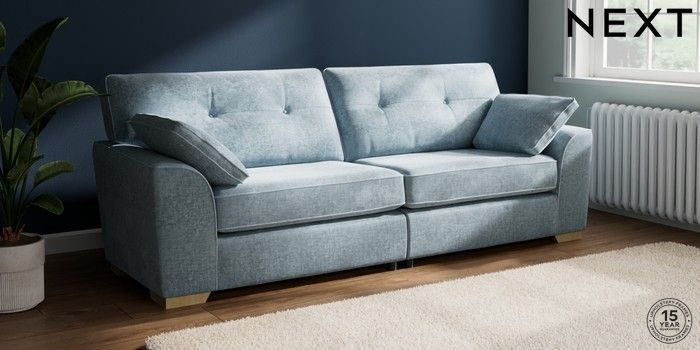 7.2.10 Stamford Buttoned Back 4 Seater Sofa Plush Chenille Light Blue Large Square Angle - Light | Made Click here to use our website with more accessibility support, for example screen readers