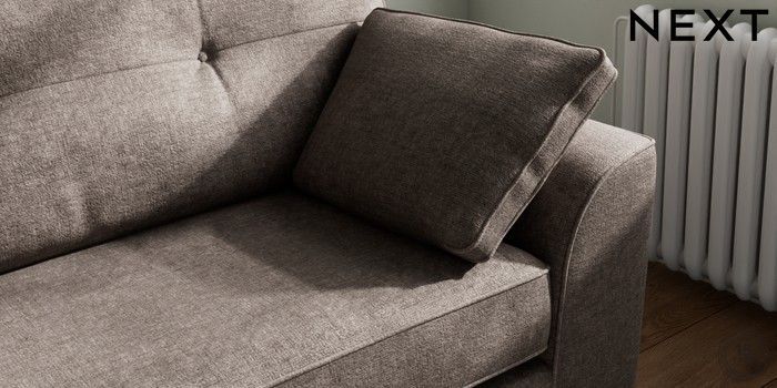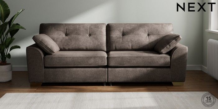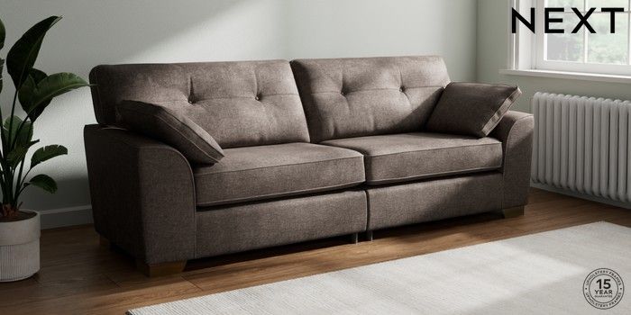 7.2.10 Stamford Buttoned Back 4 Seater Sofa Plush Chenille Mink Brown Large Square Angle - Brushed Brass | Made Click here to use our website with more accessibility support, for example screen readers