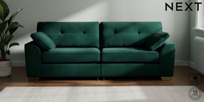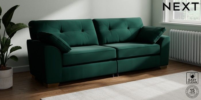 7.2.10 Stamford Buttoned Back 4 Seater Sofa Plush Velvet Easy Clean Bottle Green Large Square Angle - Brushed Brass | Made Click here to use our website with more accessibility support, for example screen readers