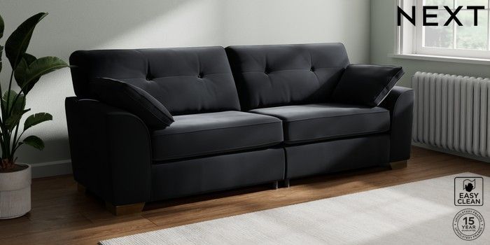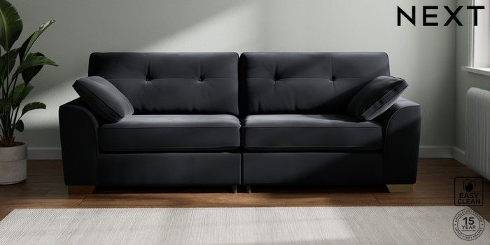 7.2.10 Stamford Buttoned Back 4 Seater Sofa Plush Velvet Easy Clean Charcoal Grey Large Square Angle - Brushed Brass | Made Click here to use our website with more accessibility support, for example screen readers