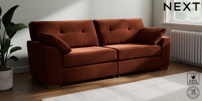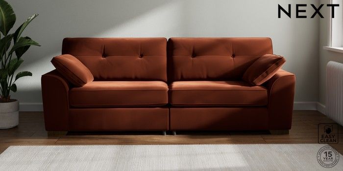 7.2.10 Stamford Buttoned Back 4 Seater Sofa Plush Velvet Easy Clean Ginger Orange Large Square Angle - Mid | Made Click here to use our website with more accessibility support, for example screen readers