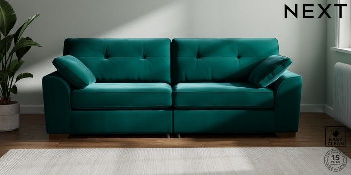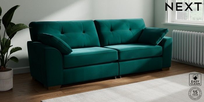 7.2.10 Stamford Buttoned Back 4 Seater Sofa Plush Velvet Easy Clean Juniper Green Large Square Angle - Mid | Made Click here to use our website with more accessibility support, for example screen readers