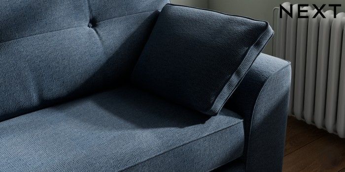 7.2.10 Stamford Buttoned Back 4 Seater Sofa Ripple Chenille Dark Blue Large Square Angle - Chrome Metal | Made Click here to use our website with more accessibility support, for example screen readers