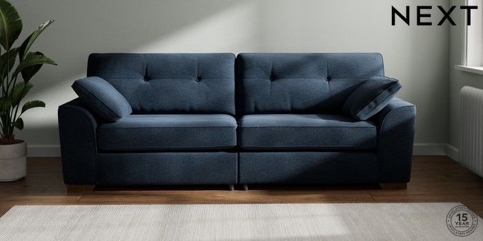 7.2.10 Stamford Buttoned Back 4 Seater Sofa Ripple Chenille Dark Blue Large Square Angle - Mid | Made Click here to use our website with more accessibility support, for example screen readers