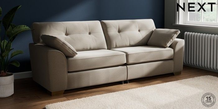 7.2.10 Stamford Buttoned Back 4 Seater Sofa Ripple Chenille Light Natural Large Square Angle - Brushed Brass | Made Click here to use our website with more accessibility support, for example screen readers
