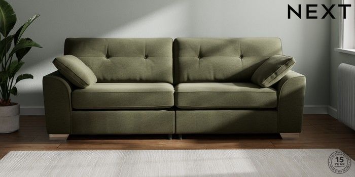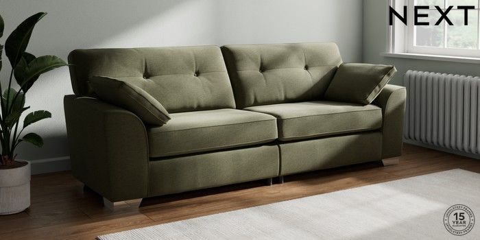 7.2.10 Stamford Buttoned Back 4 Seater Sofa Ripple Chenille Mid Moss Green Large Square Angle - Chrome Metal | Made Click here to use our website with more accessibility support, for example screen readers