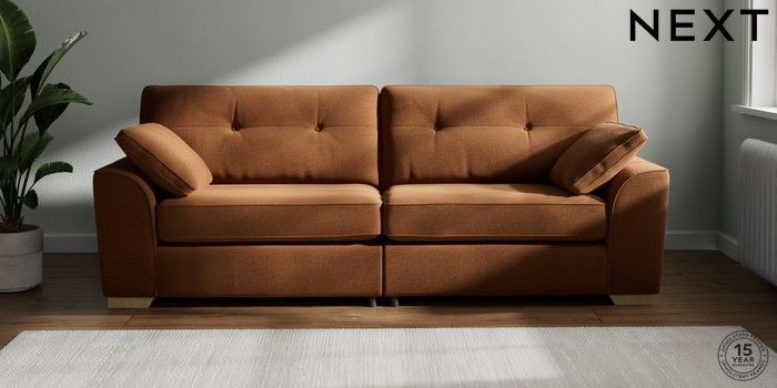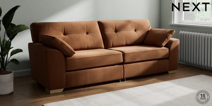 7.2.10 Stamford Buttoned Back 4 Seater Sofa Ripple Chenille Mid Rust Brown Large Square Angle - Light | Made Click here to use our website with more accessibility support, for example screen readers