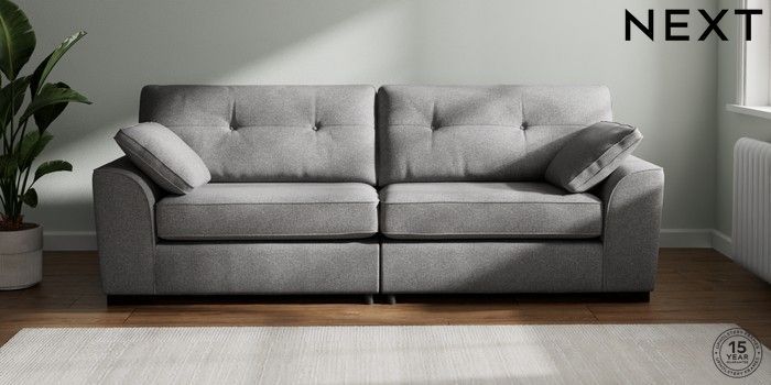 7.2.10 Stamford Buttoned Back 4 Seater Sofa Studio Chenille Mid Grey Large Square Angle - Dark | Made Click here to use our website with more accessibility support, for example screen readers