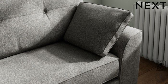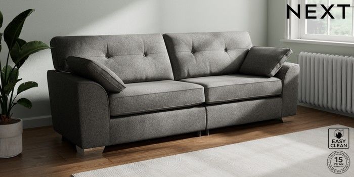7.2.10 Stamford Buttoned Back 4 Seater Sofa Tweedy Blend Easy Clean Dark Grey Large Square Angle - Chrome Metal | Made Click here to use our website with more accessibility support, for example screen readers