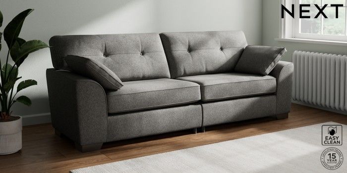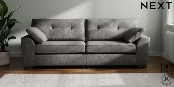 7.2.10 Stamford Buttoned Back 4 Seater Sofa Tweedy Blend Easy Clean Dark Grey Large Square Angle - Gunmetal | Made Click here to use our website with more accessibility support, for example screen readers