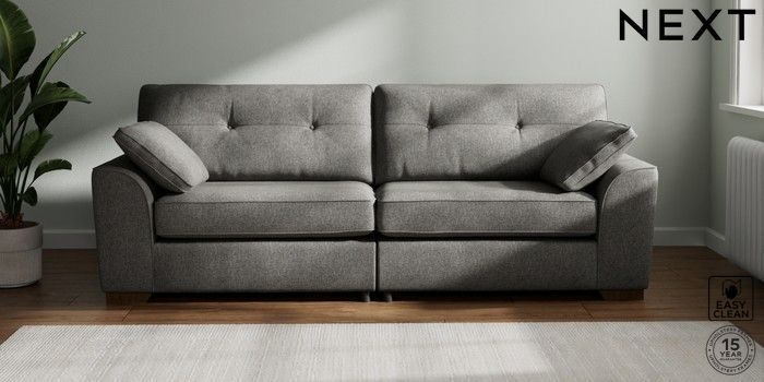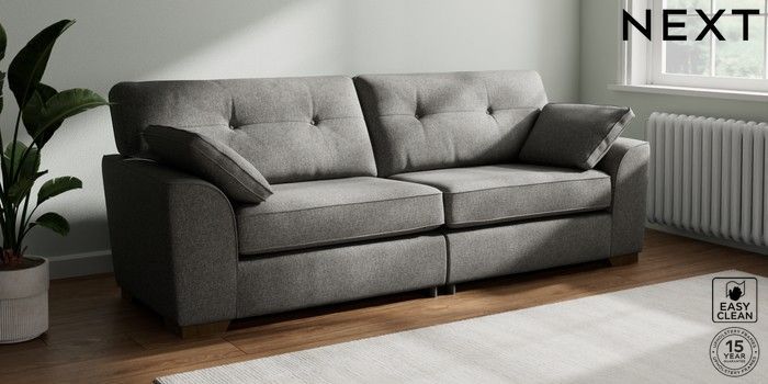 7.2.10 Stamford Buttoned Back 4 Seater Sofa Tweedy Blend Easy Clean Dark Grey Large Square Angle - Mid | Made Click here to use our website with more accessibility support, for example screen readers